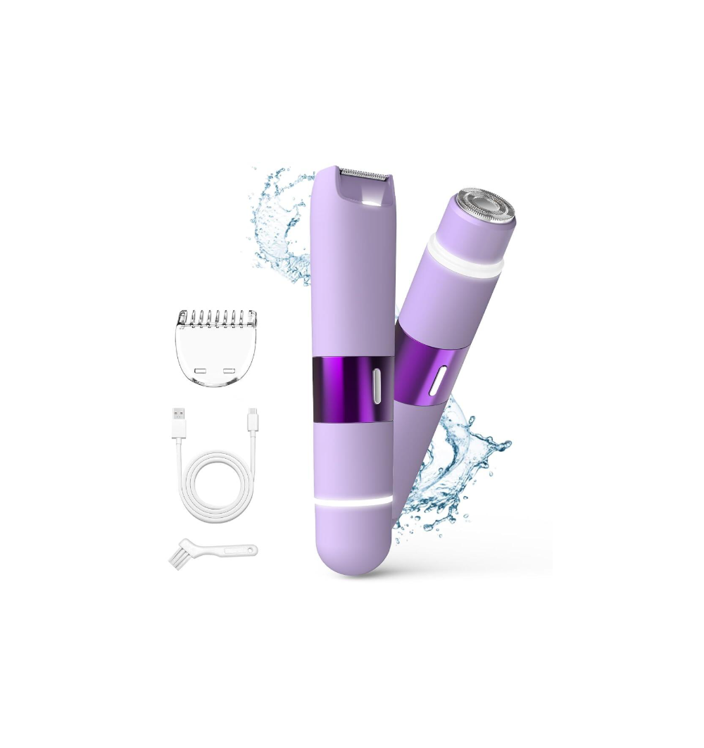 여성용 비키니 트리머, 듀얼 헤드 전기 면도기, IPX7 방수 및 쉬운 세척이 가능한 트리머, 겨드랑이 다리 팔 바디 페이스용 충전식 통증 없는 실크 글라이드 프로 면도기, 퍼플